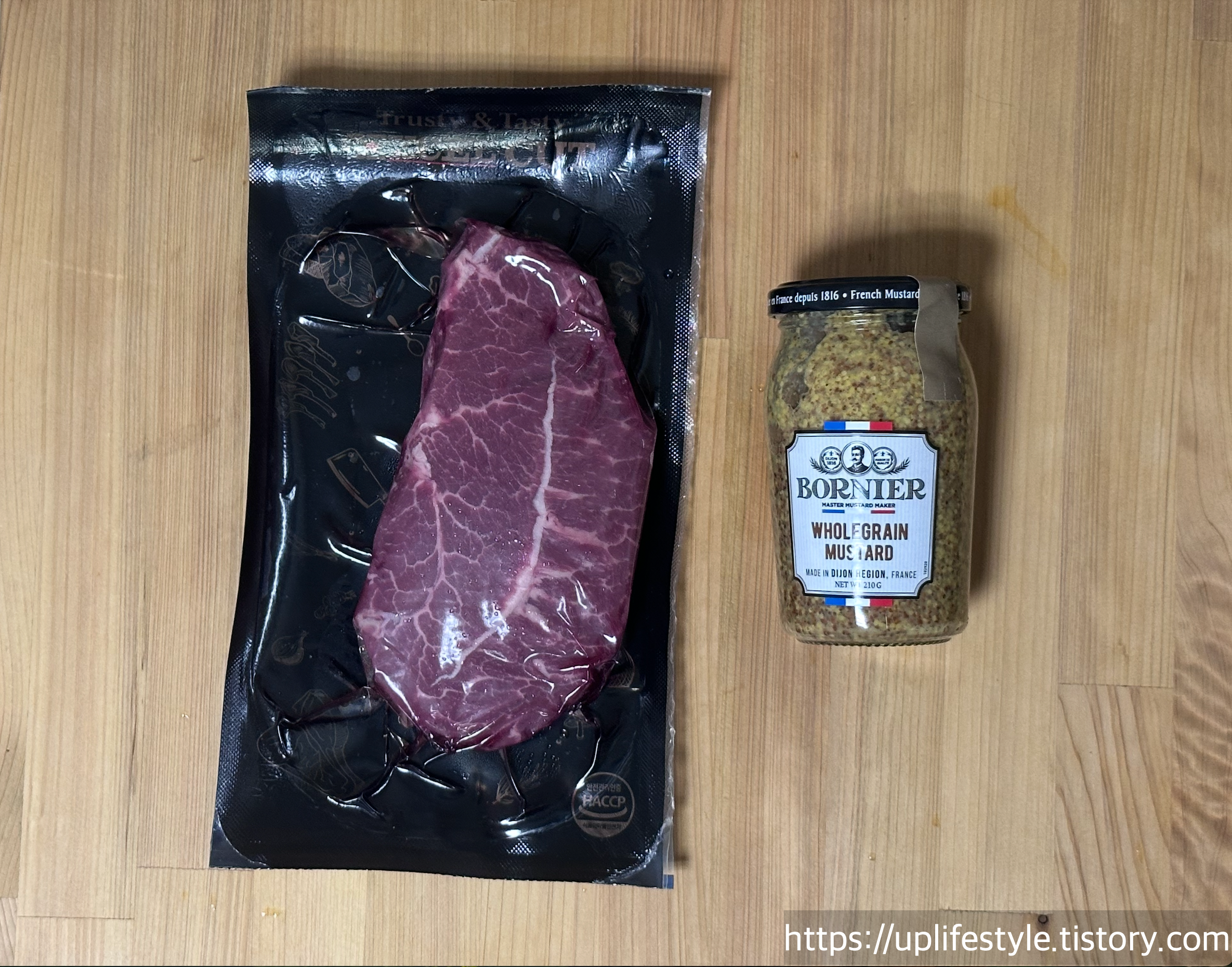 마늘 기름 + 홀그레인 머스터드 1작은술 + 레몬즙 - 소고기 마리네이드용