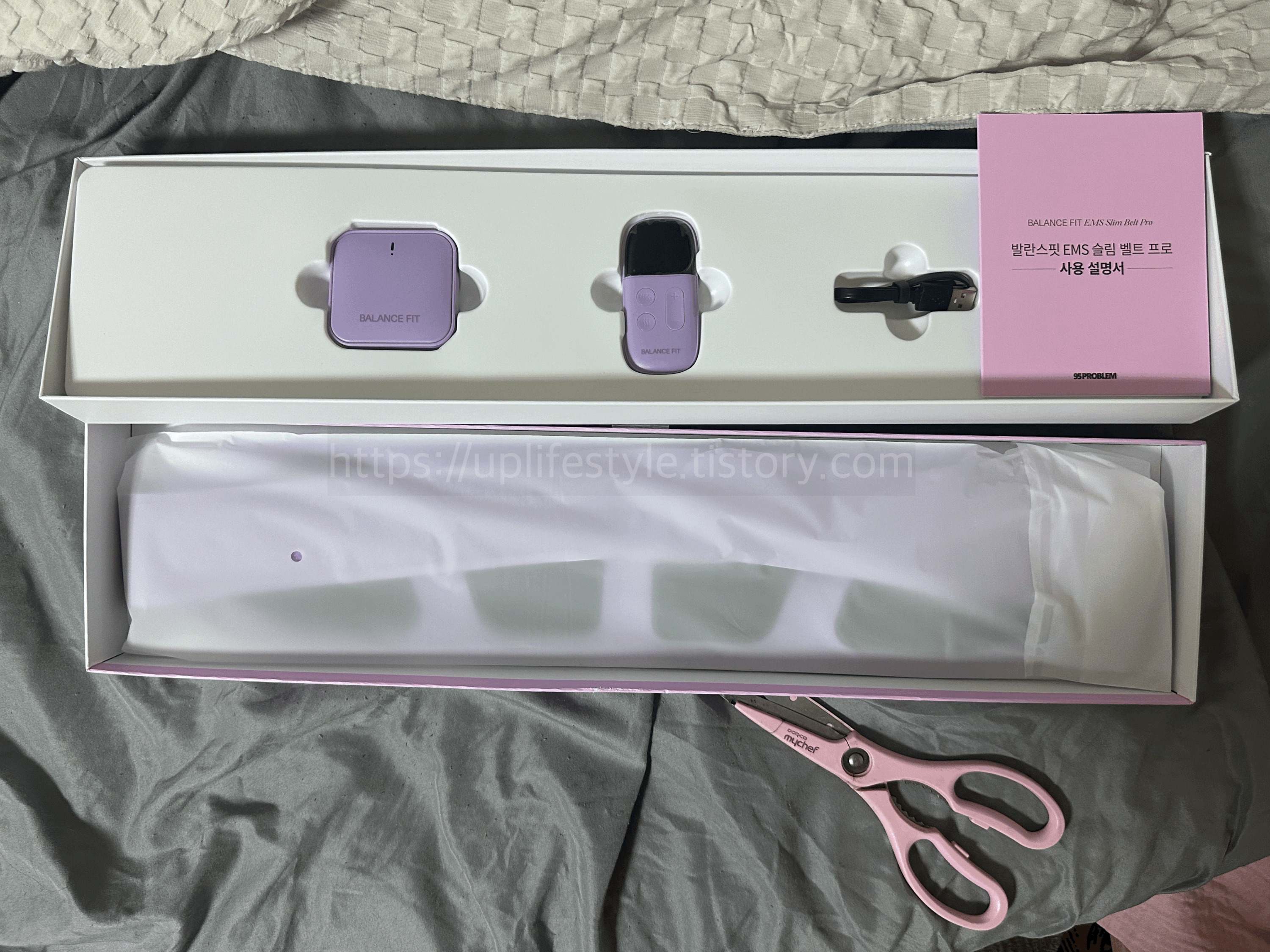 다양하게 요렇게 있구 반투명한 비닐에 쌓여있는데 발란스핏은 연보라도 좋아하고 핑크도 좋아하는 거 같아서 핑크색 가위로 뜯었습니다