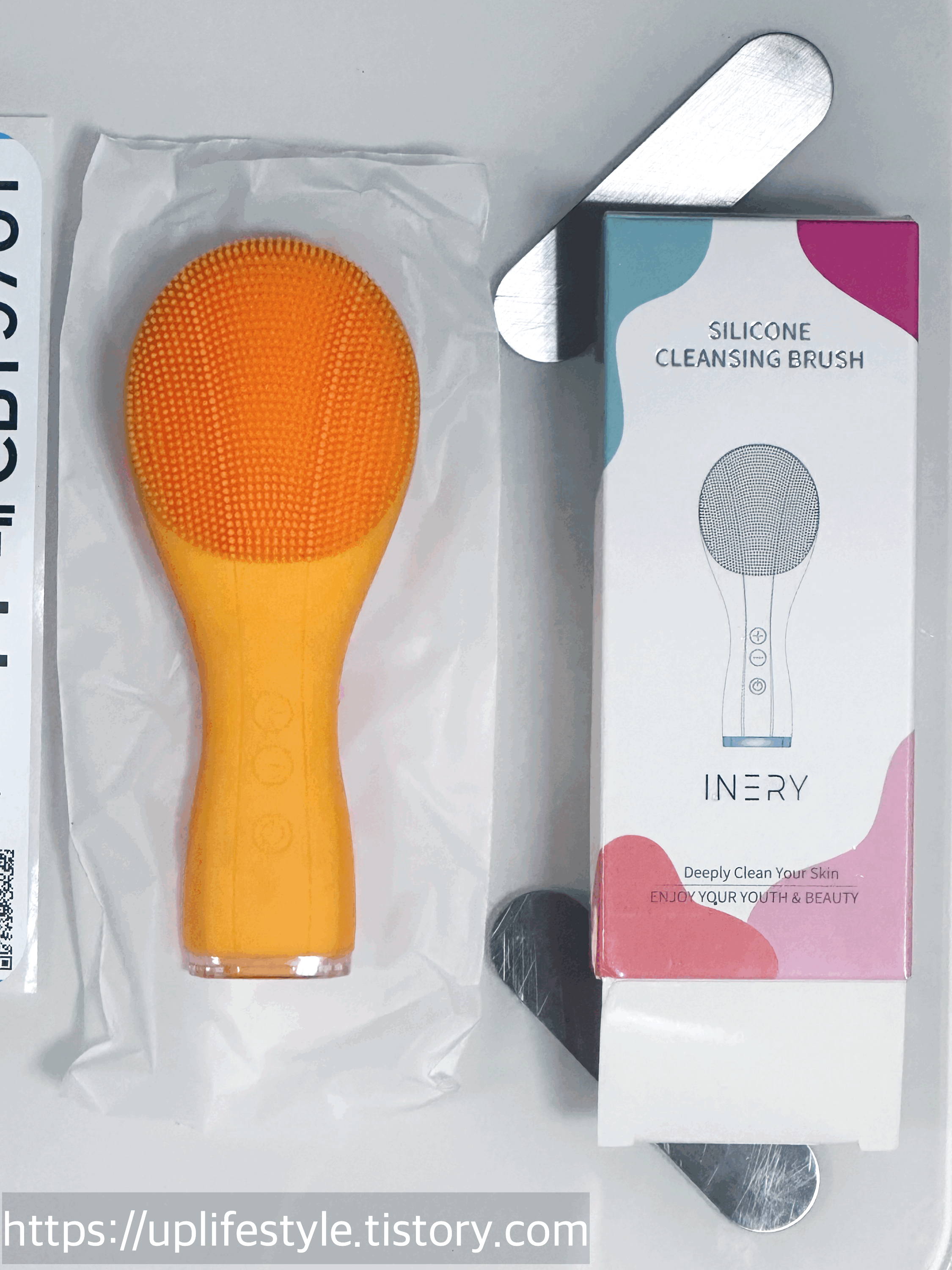 요건 새로 산 아이너리 클렌저인데 생각보다 작은 거 같으면서도 기존 거랑 비교하면 그렇게 작지않은 그런 사이즈인데 좀 짧은 감이 없잖아 있어서 배려차원에서 굴곡을 더 줬나봐요 쓰다가 미끄러지지않게 넣어준 거 같은데 근데 미끄러질 거 같지는 않아요 실리콘 자체가 마찰이 있으니까 ~
