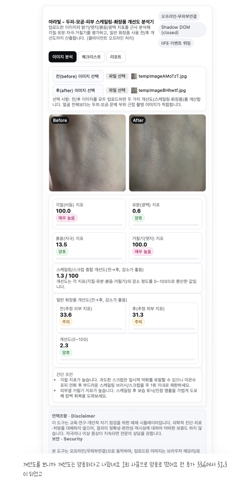 아라빛 - 두피·모공·피부 스케일링·화장품 개선도 분석기 개발해서 업로드했어요