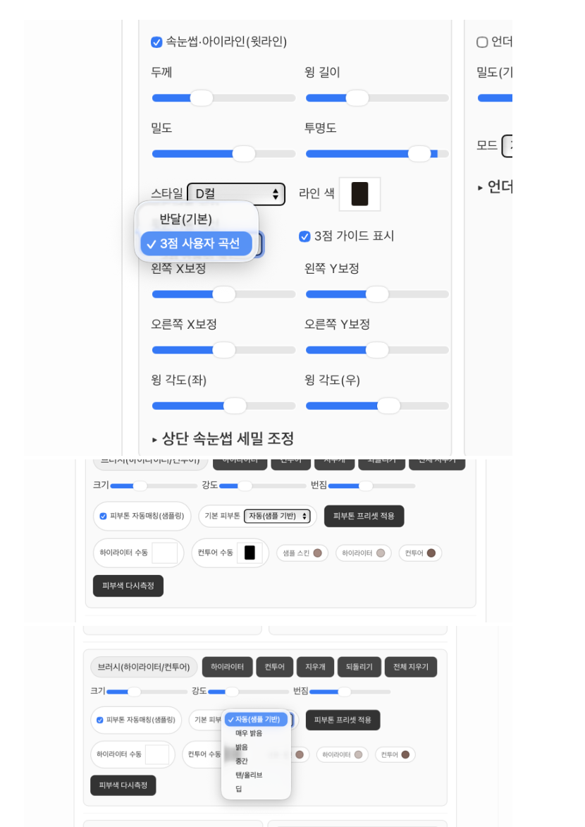 - 눈꼬리 및 눈앞머리 위치 제어 기능 강화