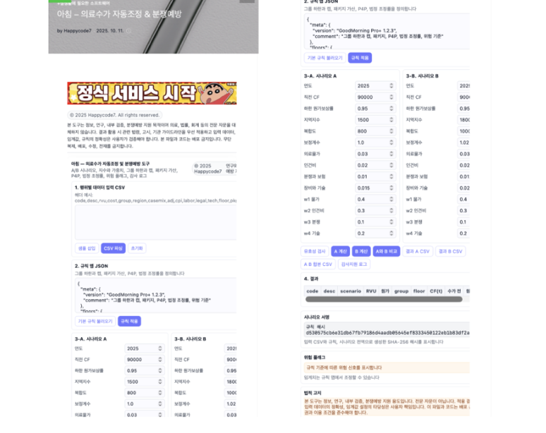 © 2025 Happycode7. All rights reserved. 본 도구는 정보, 연구, 내부 검증, 분쟁예방 지원 목적이며 의료, 법률, 회계 등의 전문 자문을 대체하지 않습니다. 결과 활용 시 관련 법령, 고시, 기관 가이드라인