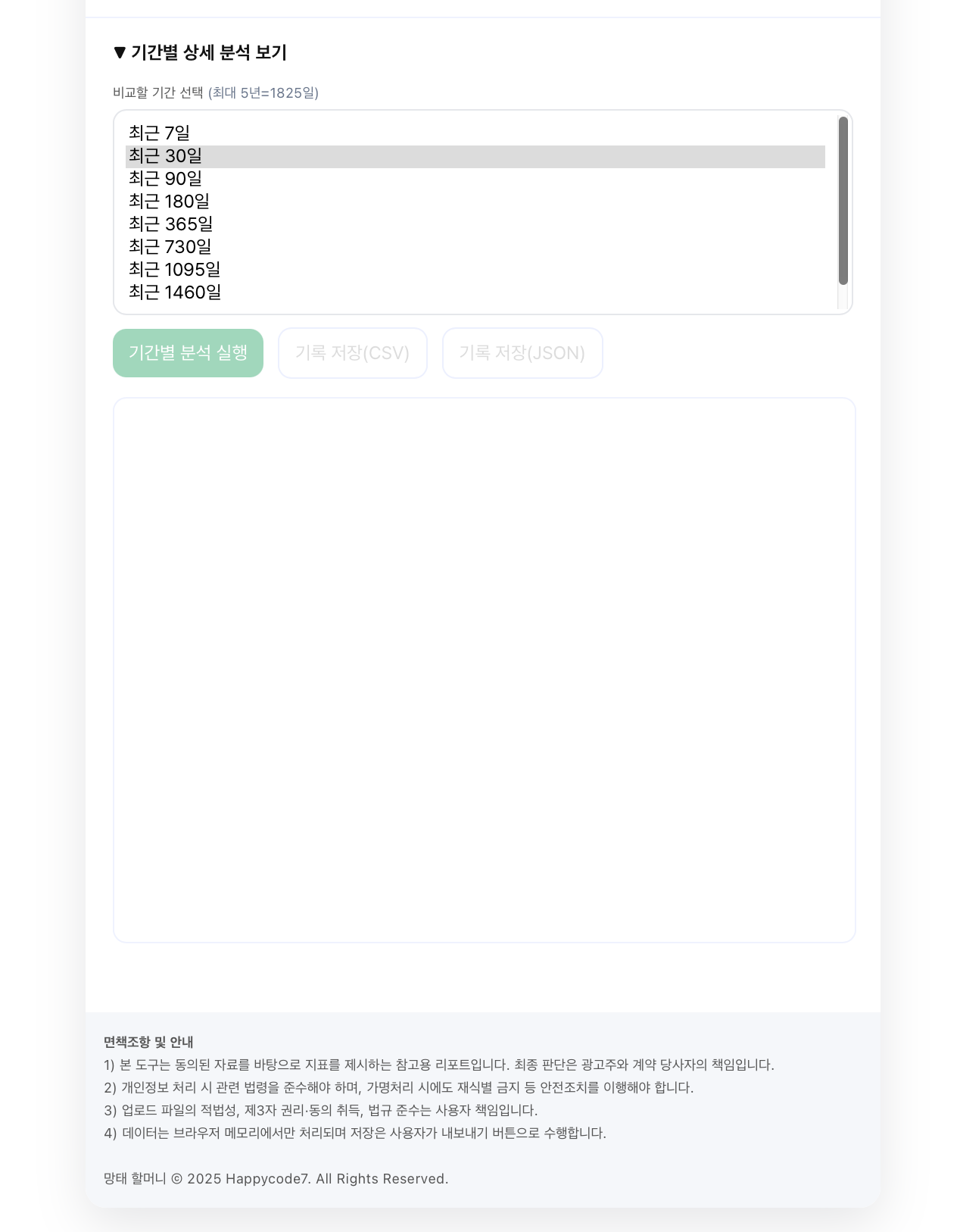 - 동의 체크 전에는 분석 버튼 비활성화(업무 목적·동의 기반)