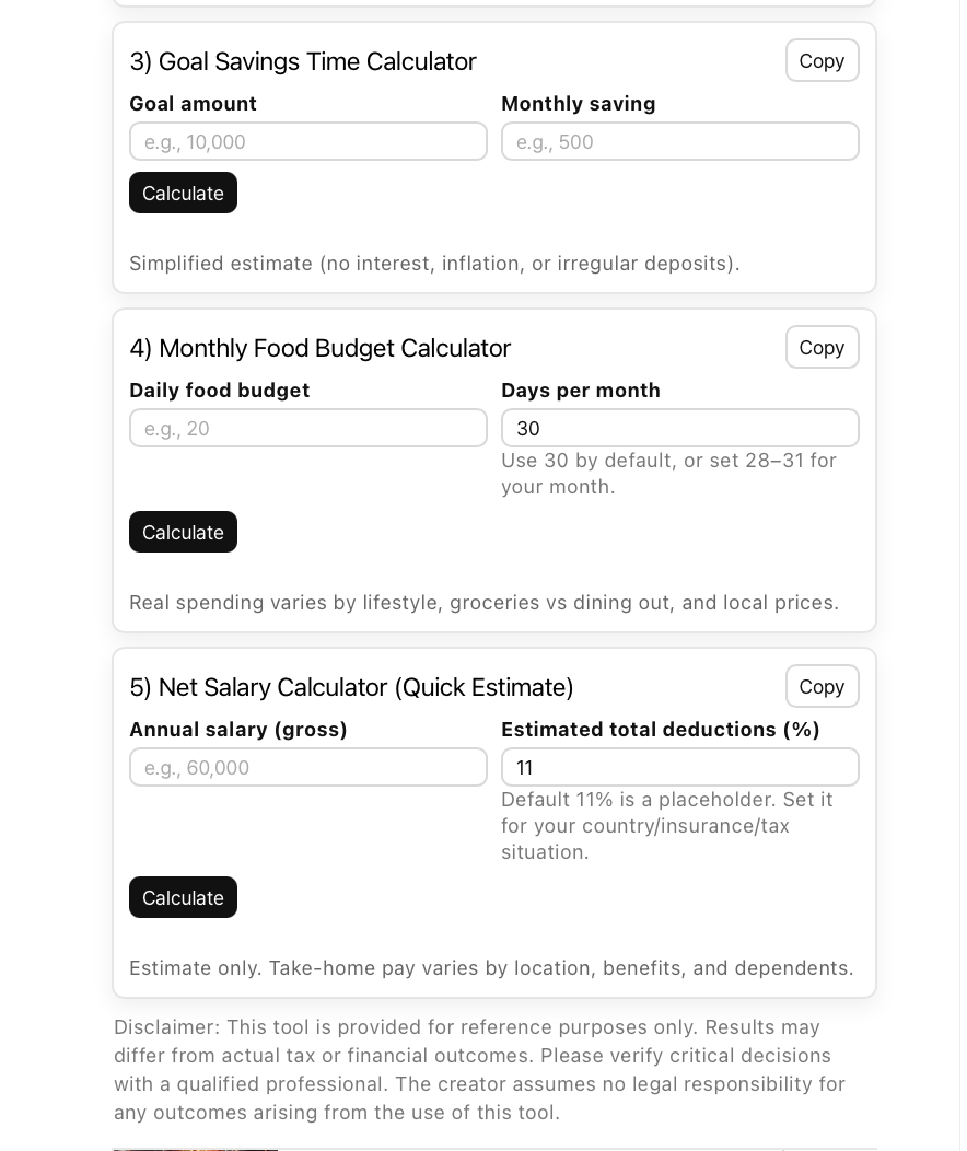 Everyday Calculators for Global Users: Tax, Savings, Goals, Food Budget, Net Salary